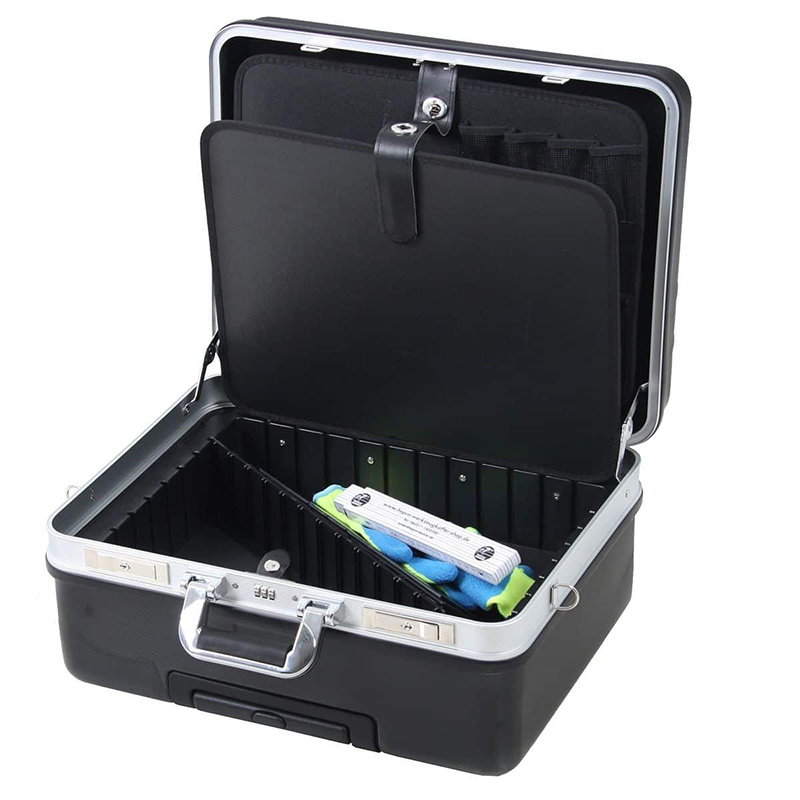 Valise maintenance REVO PTS BASIC XXL – 470 x 220 x 360 mm Coque ABS renforcée avec cadre alu, roulettes trolley, cadenas à combinaison. Insert avec poches et compartiment documents.