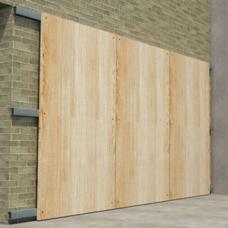 poutres ou panneaux en bois sur des structures en acier ou en aluminium.