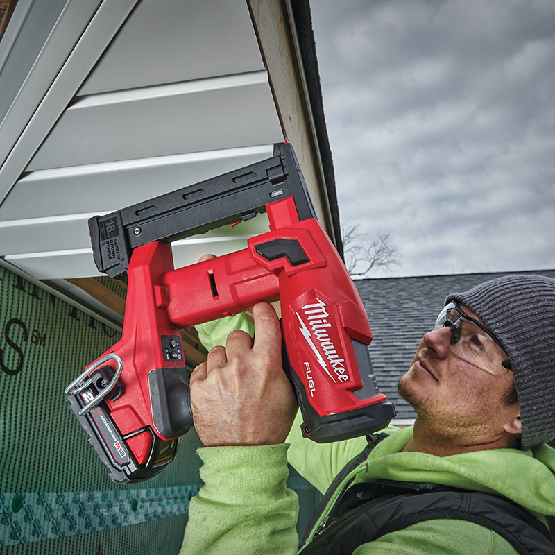 L'agrafeuse de finition MILWAUKEE® M18 FNCS18GS-202X assure des résultats précis sur bois dur, avec une cadence rapide grâce à la technologie "Ready to Fire". Sans gaz ni entretien, elle offre une grande autonomie et est compatible avec toutes les batteries MILWAUKEE® M18™.