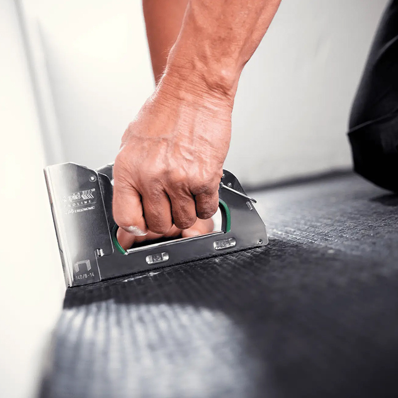 Agrafeuse manuelle RAPID R34 Ultra-résistante, idéale pour isolants, moquettes, bâches. Réglage de puissance breveté pour 40 % d’effort en moins. Compatible agrafes 140 (6-14 mm).