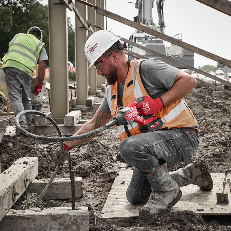 L'aiguille vibrante MILWAUKEE® M18 FCVN12-551 offre jusqu'à 12 500 VPM pour un compactage optimal du béton. Son arbre flexible de 1.2 m ou 2.4 m s'adapte à différents types de coffrage, et son variateur de vitesse garantit une performance ajustée. Livrée avec batterie et chargeur.