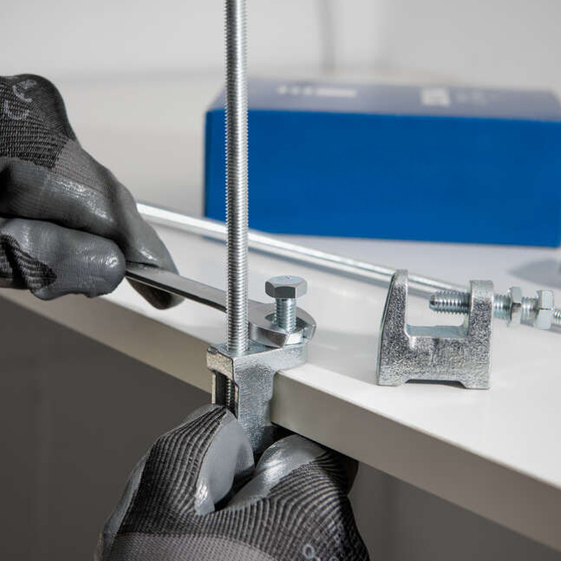 Prix pro, connectez-vousFixation sans perçage pour poutres acier. Montage rapide de colliers ou tiges filetées. Réglable en hauteur, acier zingué. Ø9–13 mm.