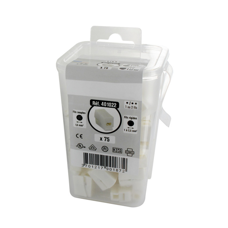 Z128202 | 2 | 1 x 1,5 mm² souple / 2 x 2,5mm² rigide | Blanc | Oui | 24 A | 450 V |