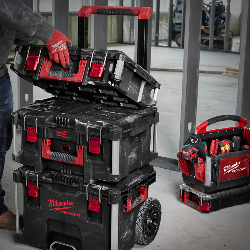 La box standard PACKOUT™ Milwaukee offre une organisation optimale grâce à son système modulaire. Fabriquée en polymère résistant aux chocs et dotée d’un joint étanche IP 65, elle protège vos outils de la poussière et de l'eau. Son plateau organisateur et ses coins renforcés garantissent durabilité et sécurité.