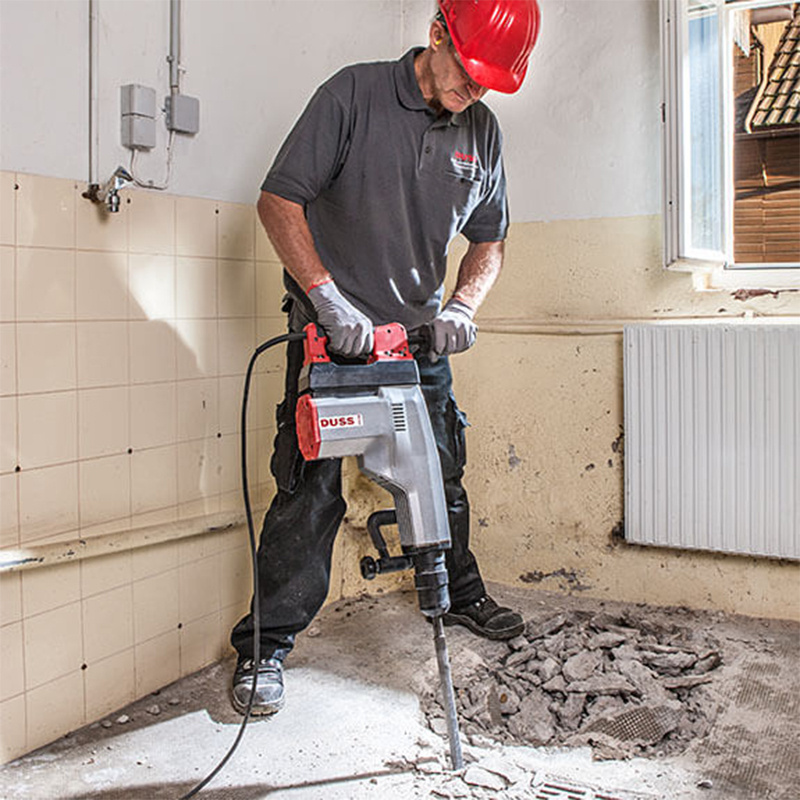 Le burineur DUSS PK300A 1700W est conçu pour les travaux de démolition lourde et la création d’ouvertures. Avec une énergie d'impact de 14 à 27 J et une cadence réglable de 1000 à 1900 coups/min, il offre performance et confort grâce à son système de réduction des vibrations. Parfait pour les chantiers intensifs.