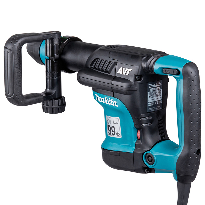 Burineur SDS Max Makita HM0871C 1100W AVT. Puissant et précis, idéal pour perforation et burinage. Technologie anti-vibration AVT et Soft Grip pour un confort optimal. Mandrin One Touch SDS-MAX et 12 positions de burin pour une flexibilité maximale.