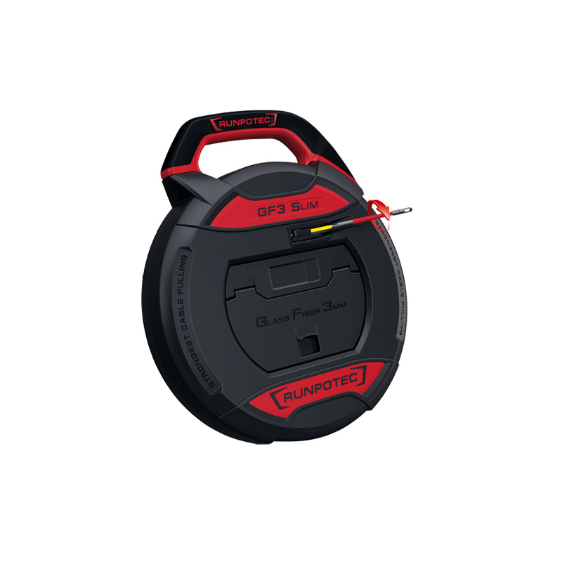 Cassette GF3 SLIM Ø3 x 30 m – Fibre optique FTTH Aiguille Ø3 mm avec pointe RG4.5 anti-torsion – R mini 40 mm. Charge de traction 100 kg – Accessoires 14 pièces intégrés. Idéal pour conduits Ø 5-40 mm – Boîtier renforcé antichoc.