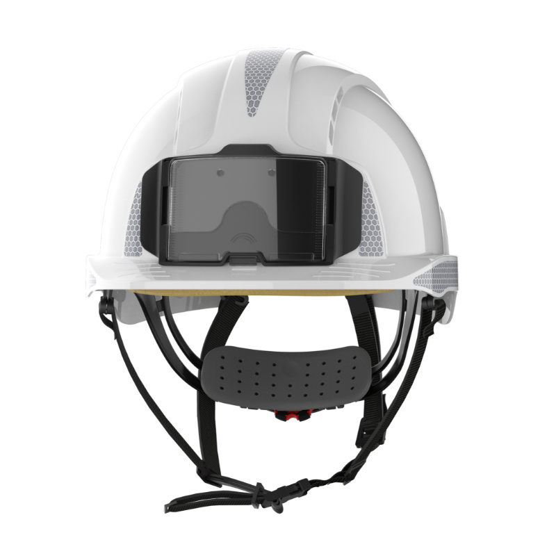 Pour BTP & second œuvre : porte-badge étanche, jugulaire 4 pts, lunettes rétractables. Réglage 3D + crémaillère Revolution™, bandes réfléchissantes. Calotte ABS, ventilation latérale, normes EN 397 / EN 166.