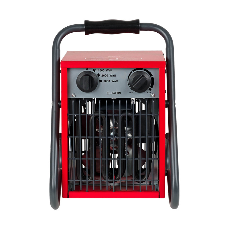 Chauffage soufflant électrique Sunbeam 3 kW Pour ateliers, garages et petits entrepôts – chauffe jusqu’à 90 m³. 3 niveaux de puissance, thermostat intégré et protection surchauffe. Corps métal robuste, élément chauffant inox, compact et portable (4 kg).