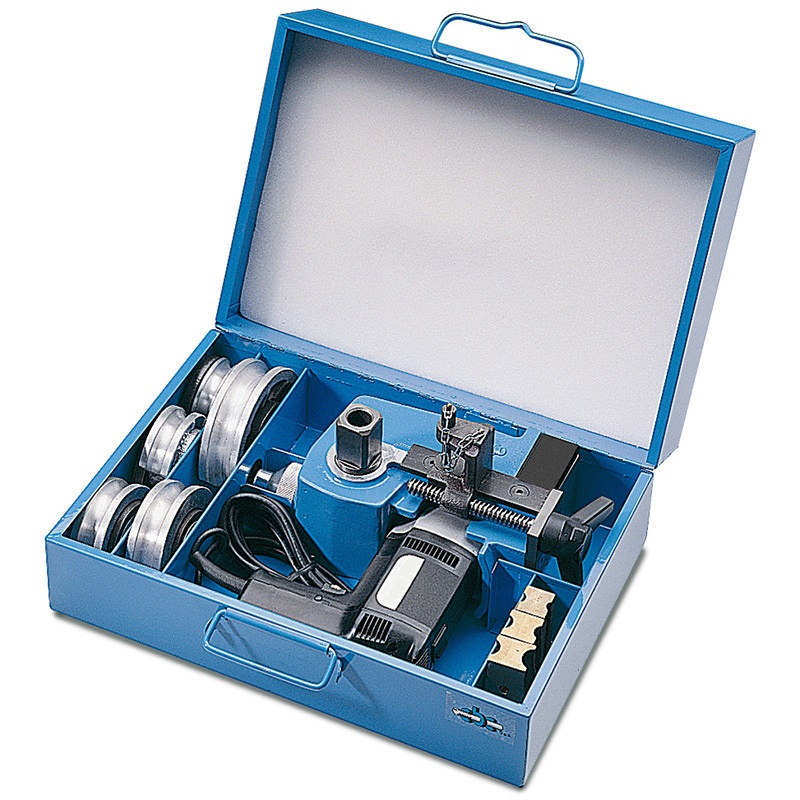 Cintreuse électrique FLEXO22 Ø12-22. Cintrage jusqu’à 180° pour cuivre et acier. Variateur droite/gauche, adaptateur emboîtures. Compacte, 5 formes + coffret inclus.