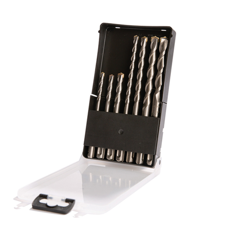 Set 7 forets SDS‑Plus Ø 5‑6‑8 × 110 mm + 6‑8‑10‑12 × 160 mm. Carbure, perçage béton. Étui PVC inclus.