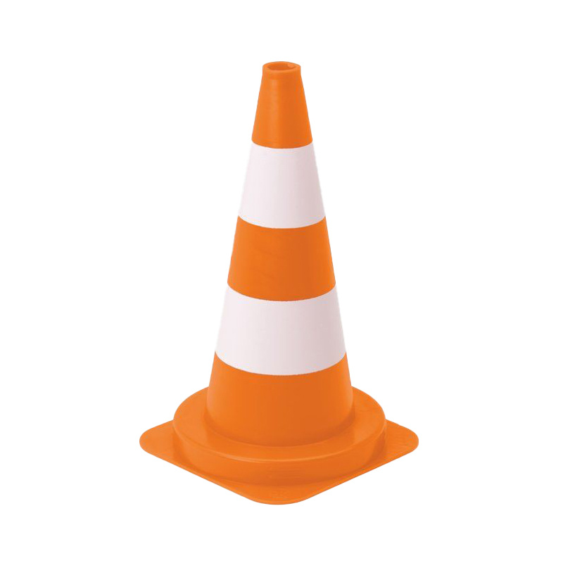 Cône de signalisation 50 cm en PVC recyclé, monobloc avec 2 bandes réfléchissantes blanches. Léger (1,1 kg), stable et facilement transportable. Idéal pour balisage et sécurité sur chantiers.