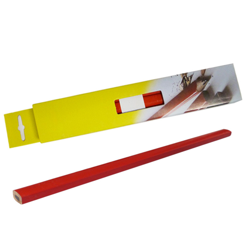 Crayons rouges pour tracés précis sur bois, béton et pierre. Longueur 25 cm. Boîte de 12 crayons, idéal pour menuisiers et charpentiers.