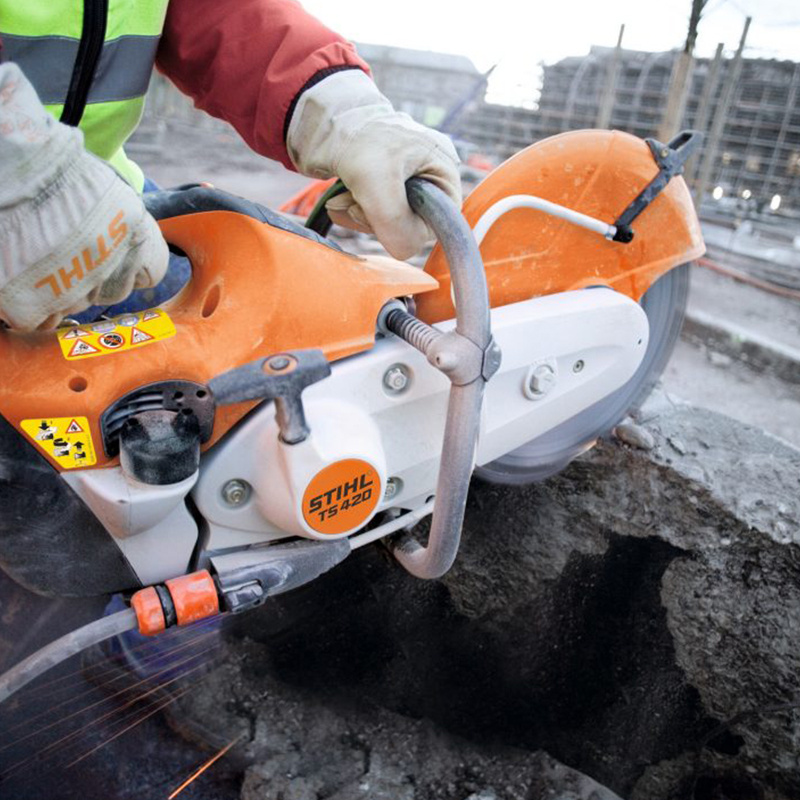 La STIHL TS420 est une découpeuse thermique légère et compacte, conçue pour