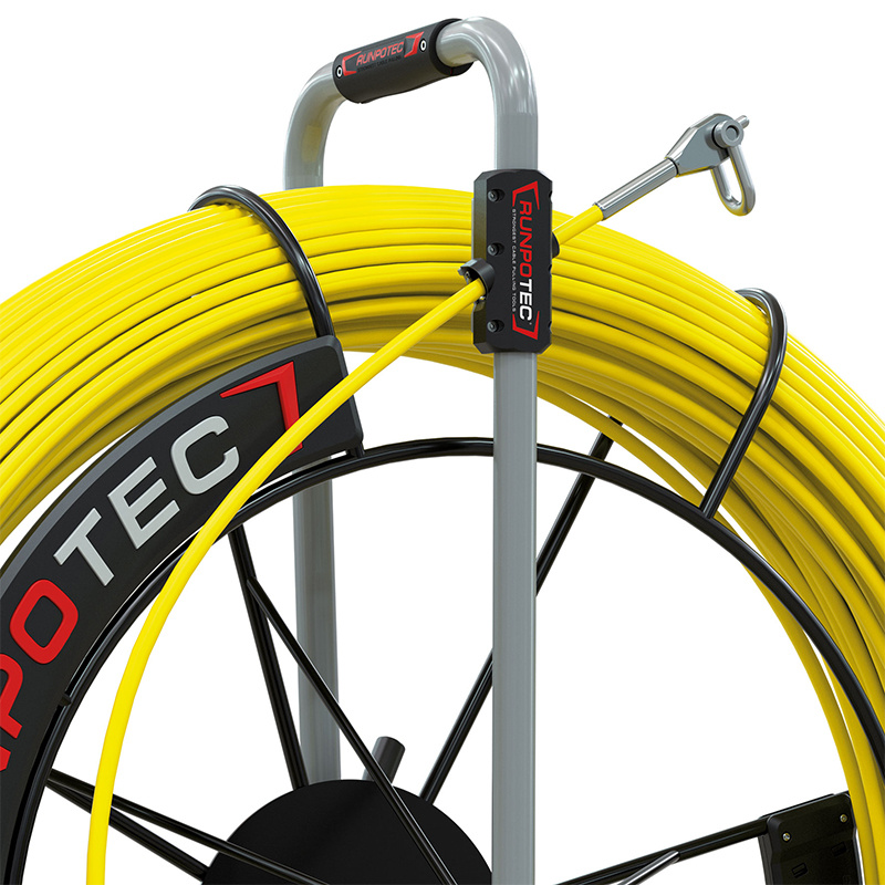 Le dérouleur aiguille fibre RUNPOTEC assure un tirage de câbles efficace grâce à son dévidoir en acier et son système de double sortie. Robuste et précis, il supporte une charge de traction jusqu’à 6200 kg, idéal pour les conduits de 80 à 250 mm.