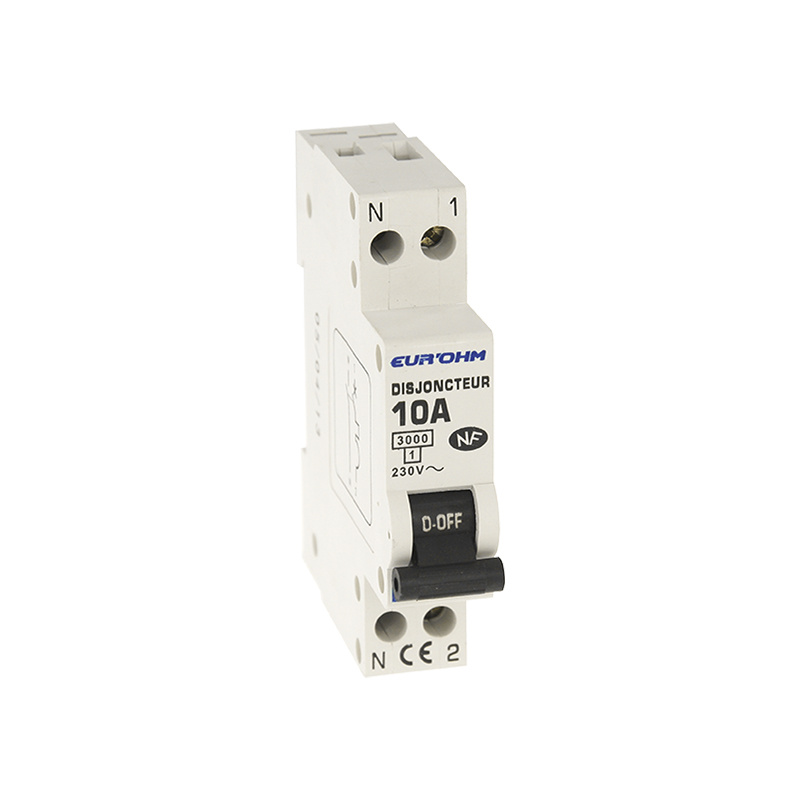 Le disjoncteur Eur’ohm 1P+N de 10A avec courbe D est