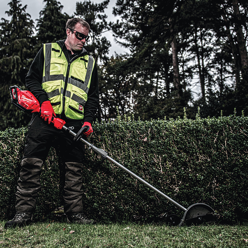 Le dresse-bordure COMBI SYSTEM MILWAUKEE® M18 FOPH-EA offre une coupe nette et précise pour les bords de pelouse, trottoirs et chemins. Avec une vitesse de 3900 tr/min, une lame de 20,3 cm et une roue de guidage, il assure une finition professionnelle.