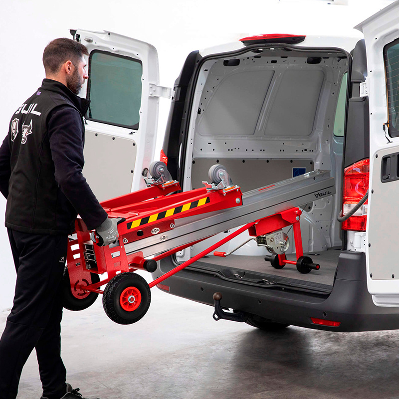 réversibles, jambes stabilisatrices avec niveleurs, treuil automatique à double