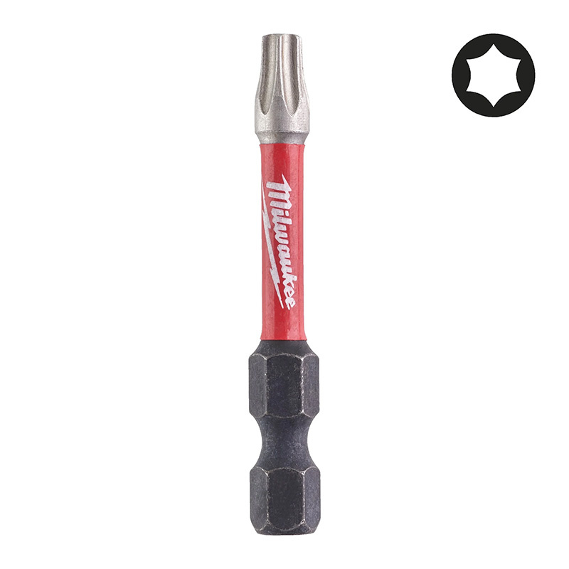 L'embout Torx Impact T25 50 mm SHOCKWAVE est conçu pour les applications intensives. Sa "Shock Zone" absorbe les torsions et réduit le risque de rupture, tandis que l'empreinte forgée garantit une insertion précise et durable. Fabriqué en acier spécial pour une meilleure résistance à l'usure.