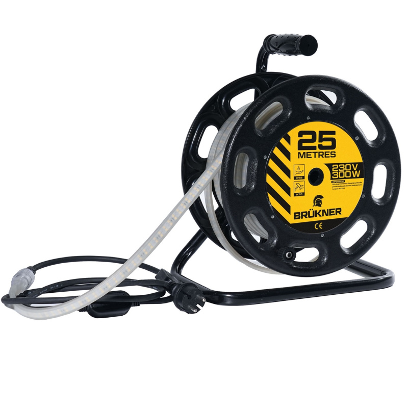 Ruban LED Brükner 25 m – 37 500 lm sur enrouleur Éclairage puissant IP65 pour chantier, intérieur/extérieur Blanc neutre 4000K Enrouleur pratique, transport et pose faciles