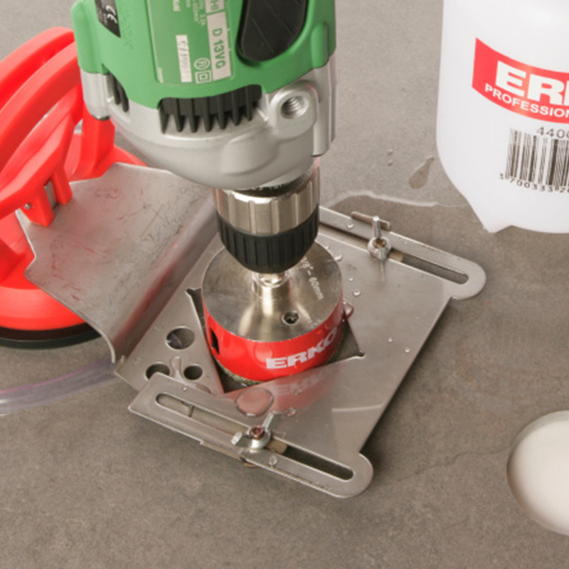 Guide de perçage ventouse – universel Guide inox avec ventouse puissante, compatible tous diamètres jusqu’à 89 mm. Trou de perçage : Ø 6, 8, 10, 12 mm (1/4’’–1/2’’). Maintien stable pour perçage précis sur surface plane.