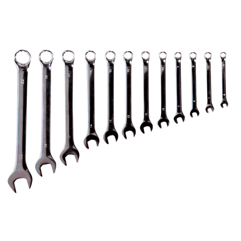 Jeu complet de 12 clés mixtes en acier chrome vanadium, alliant robustesse,