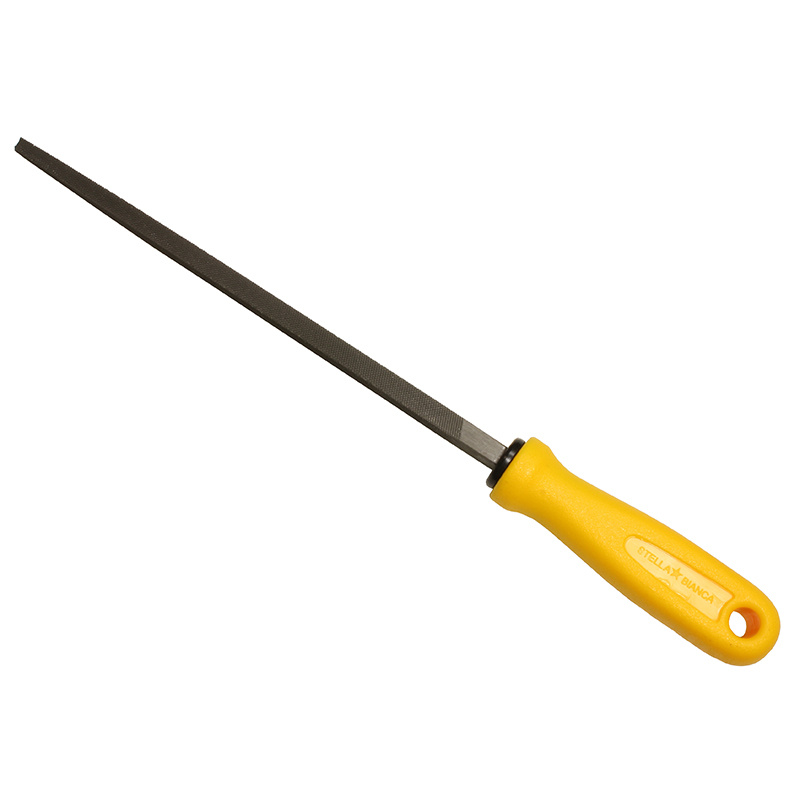 Lime triangulaire mi-douce GETEC 200 mm Finition précise, idéale pour angles et profils complexes Manche fibre ergonomique avec trou de suspension Longueur 200 mm – qualité professionnelle GETEC