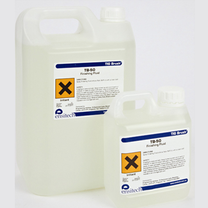 Liquide nettoyage & avivage TIG BRUSH TB-50 Solution incolore pour inox. Restaure l’aspect naturel, évite les traces de doigts et offre une brillance durable. Disponible en 1 L ou 5 L.