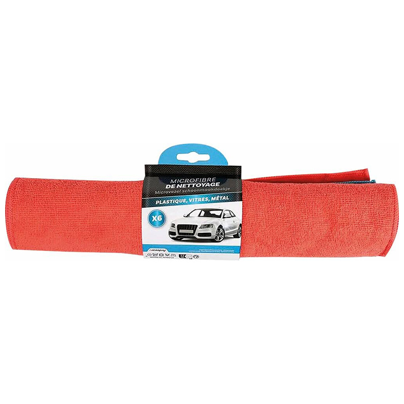 Lot de 6 lavettes microfibres 40x30 cm, ultra-absorbantes pour un nettoyage efficace des poussières, graisses et salissures. Idéales pour l'intérieur et l'extérieur des véhicules.
