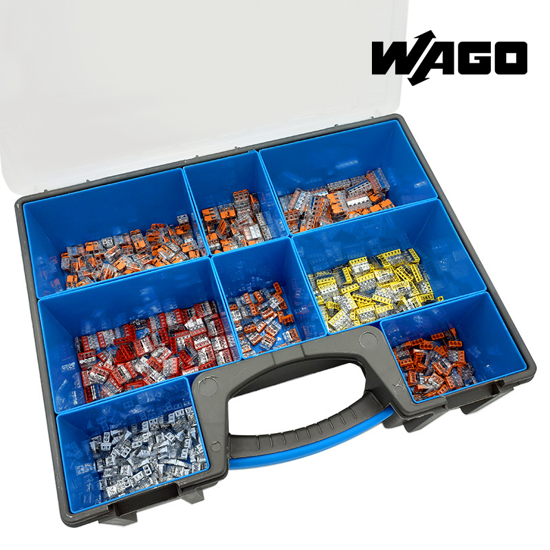 Mallette Landy Connection Mini Wago Kit complet connectique Mini Wago 2–5 entrées et à levier. Mallette 8 compartiments pour un rangement pratique et un accès rapide. Idéal électriciens et pros du second œuvre.