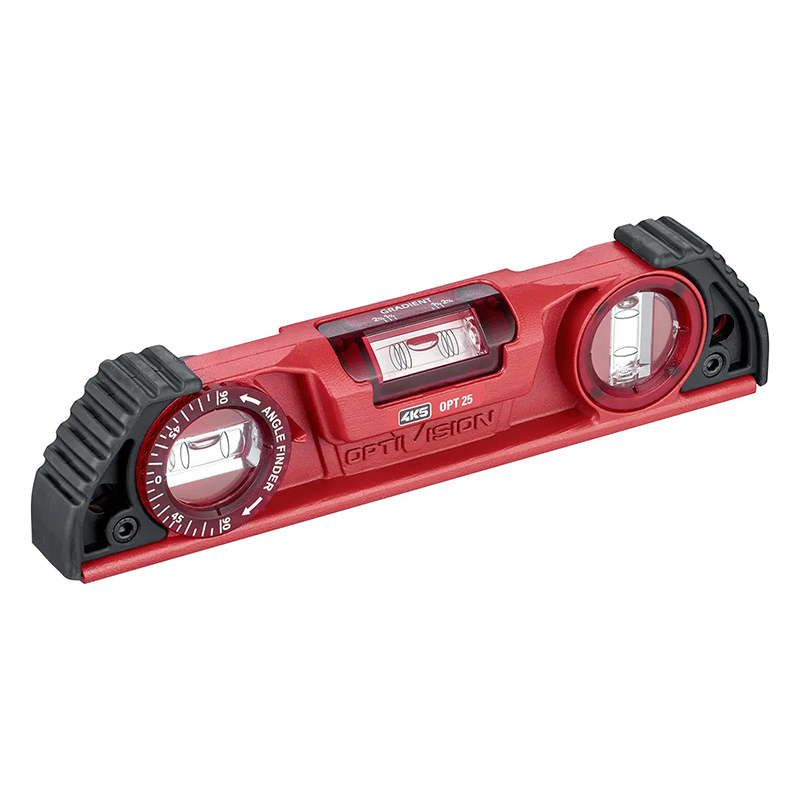 La fiole d’inclinaison rotative, avec des repères tous les 5°, facilite la mesure rapide des angles. La rainure en V et les puissants aimants en terre rare permettent d’aligner facilement les conduites et chemins de câbles. Son boîtier conique en aluminium ultrarésistant, associé à des embouts antichocs, garantit une grande robustesse et une durabilité exceptionnelle sur chantier.