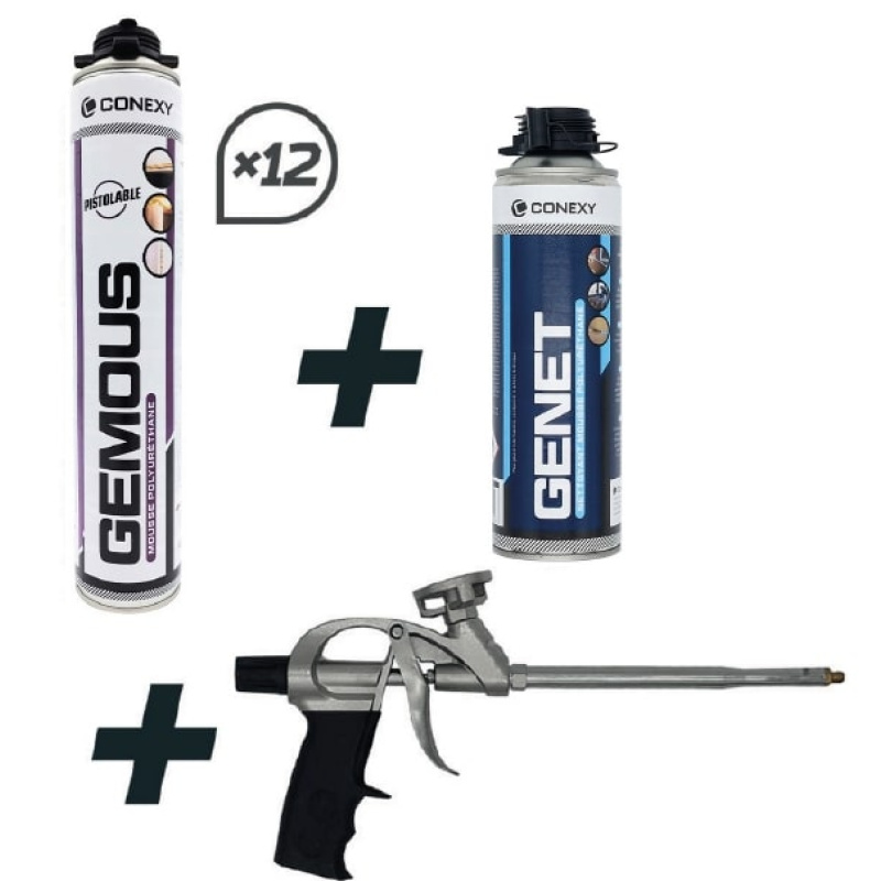 Pack promo 12 mousses expansives pistolables 750ml + 1 nettoyant mousse + 1 pistolet