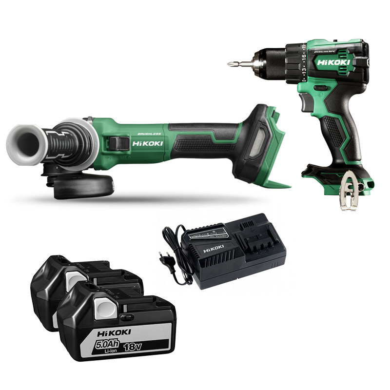 Pack Hikoki 18V : visseuse DS18DEW2Z + meuleuse Ø125 G1813DAW2Z Inclus : 2 batteries Li-Ion 18V/5Ah BSL1850 + chargeur rapide UC18YFSL Robustesse & autonomie pour perçage, vissage et découpe Pack complet idéal pour les pros du bâtiment et de la maintenance