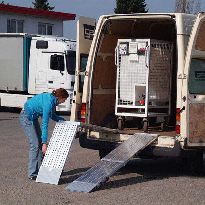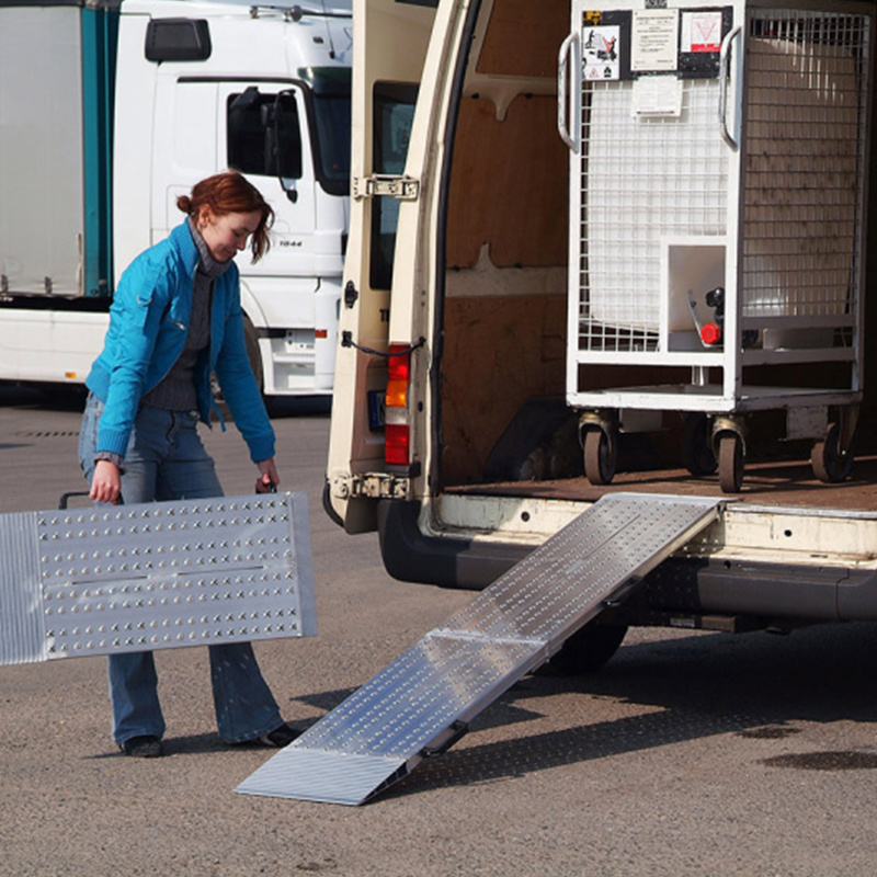 Cette paire de rampes d’accès en aluminium pliables en deux parties est