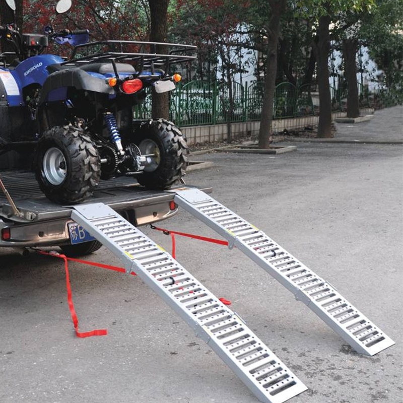 Les rampes pliables 3 parties en acier de 2m offrent une capacité de charge de 500 kg dépliées et 1600 kg pliées. Leur conception pliable permet un rangement facile, idéale pour le transport d'objets lourds. Pratiques et robustes, elles garantissent une utilisation sécurisée.