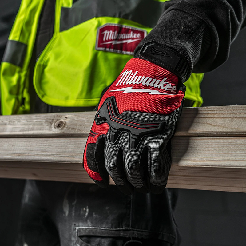Gants de démolition Milwaukee T.10/XL. Paumes et doigts renforcés ARMORTEX™, protection articulations TPR. SMARTSWIPE™ pour écrans tactiles, doublure respirante avec éponge. Maintien velcro, certifiés EN ISO 21420 et EN388:2016 (2121A).