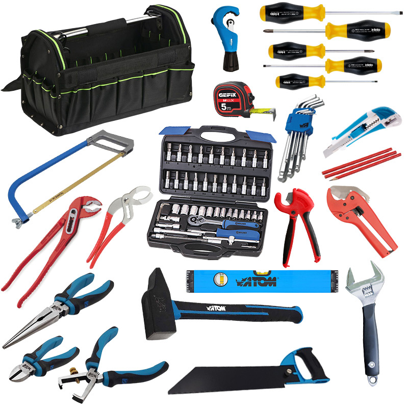 multiprises, des déboucheurs, ainsi que des mètres et rubans de plombier.