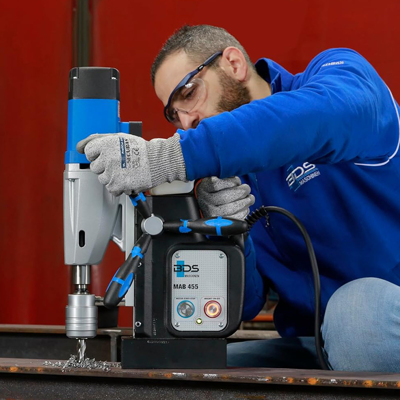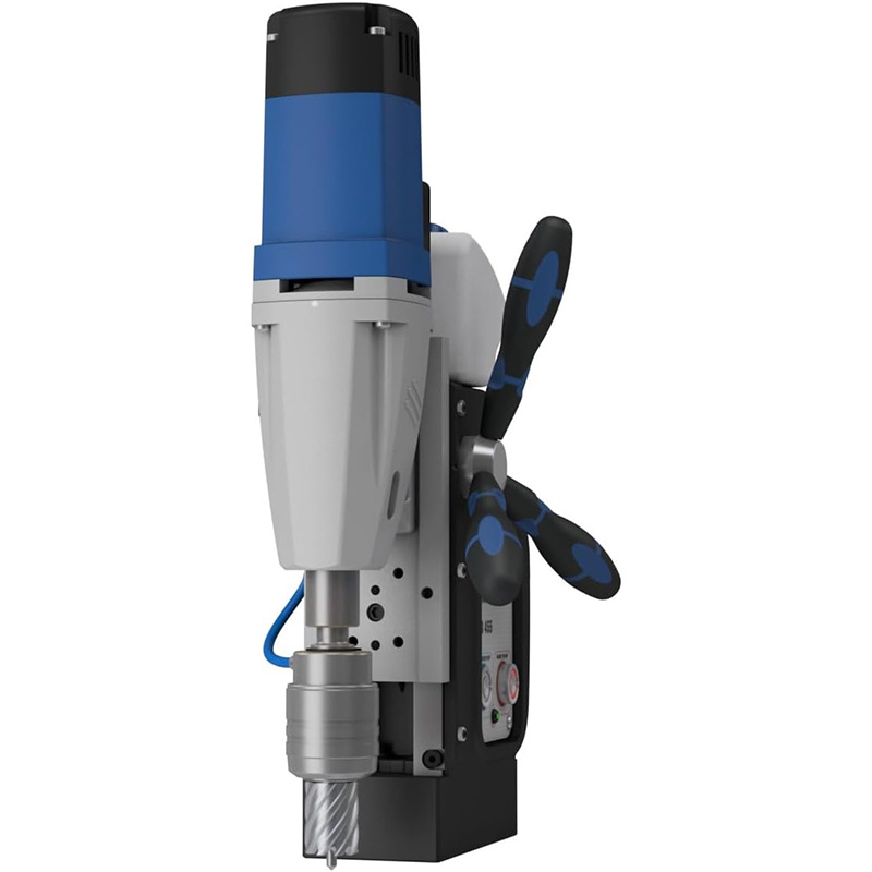 Perceuse magnétique MAB455 1150W Puissante et précise, avec base pivotante réglable pour perçage horizontal. Serrage rapide KEYLESS et témoin LED. Perçage jusqu’à 40 mm, taraudage M42, 2 vitesses. Idéale pour construction métallique et chantier.
