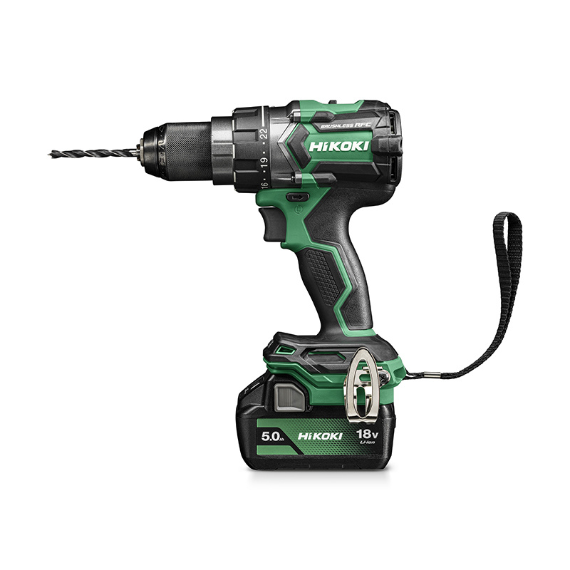 HIKOKI DS18DCWPZ 18V/5Ah – Perceuse visseuse Brushless ultra-puissante (140 Nm). Sécurité Gyro-Sensor + RFC, mandrin métal 13 mm, 2 vitesses, 22 couples. Compacte (190 mm), poignée rotative, LED. Livrée avec 2 batteries 5 Ah + chargeur.
