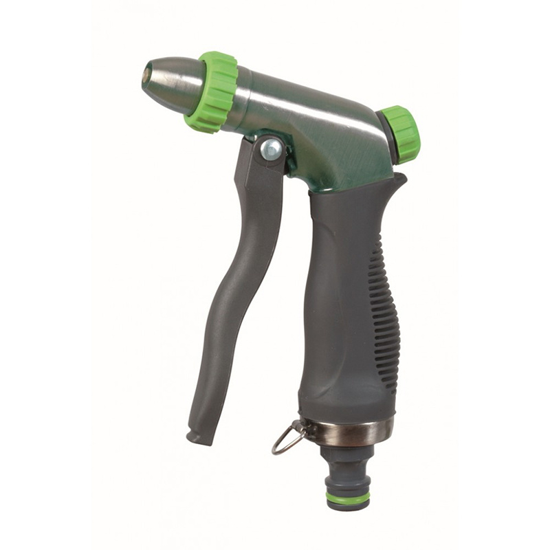 Pistolet d’arrosage ABS grande portée Jet réglable de diffus à concentré. Manette de débit verrouillable. Poignée ergonomique Soft-Touch.