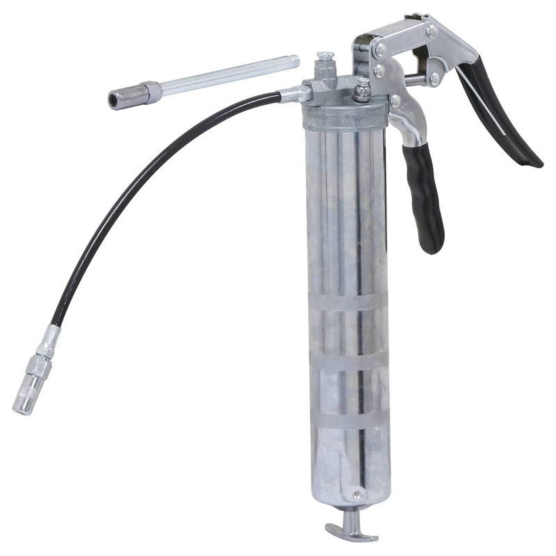 Le pistolet de graissage manuel 400g est compatible avec les cartouches de 400g et la graisse en vrac. Il offre une pression de 240 bar et est livré avec un flexible de 300mm, un tuyau rigide et une agrafe 4 mors pour un graissage précis. Idéal pour une utilisation professionnelle.