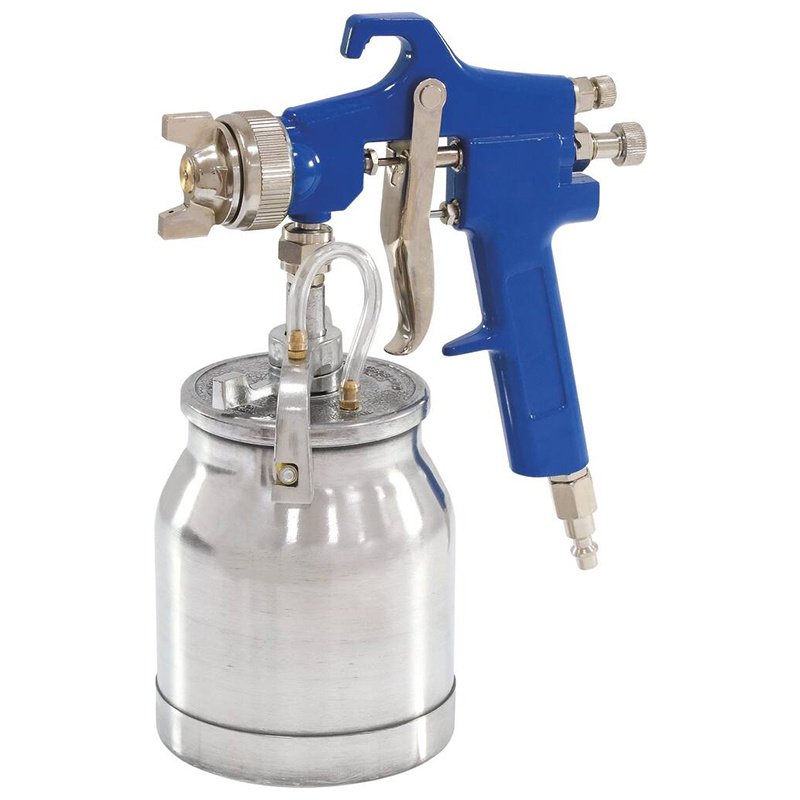 Le pistolet de peinture à air avec godet aluminium de 1L et buse Ø 1,8 mm offre une application précise et efficace. Avec une consommation d'air de 130-200 l/min et une pression maximale de 5 bar, il est parfait pour les travaux de peinture professionnels. Raccord rapide M 1/4".