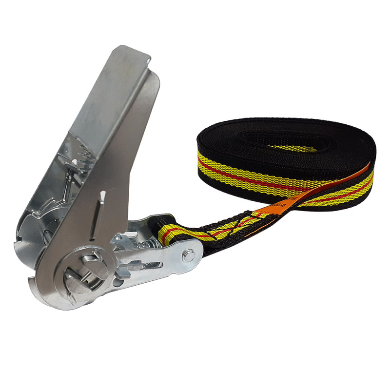 Sangle bagagère polypro 5 m x 25 mm avec cliquet. Résistance : 150 kg. Idéale pour petits arrimages.