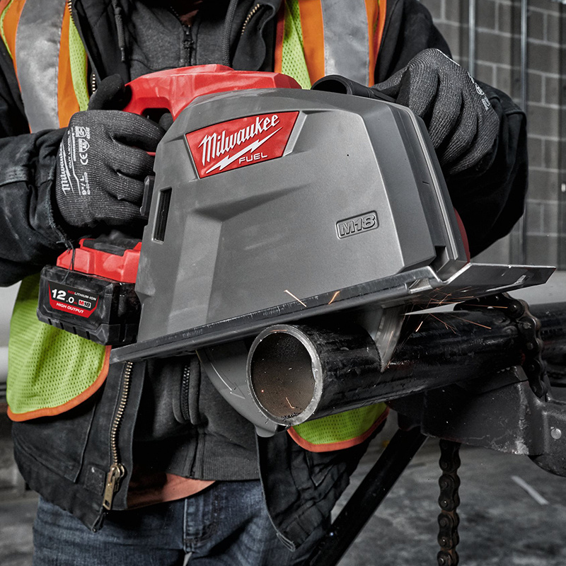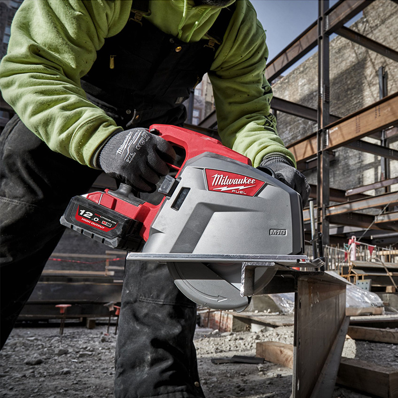 Scie circulaire métal MILWAUKEE® M18 FMCS66-0C sans fil, avec profondeur de coupe de 66 mm, frein électrique, technologie FUEL™, et collecteur de copeaux métalliques. Livrée sans batterie ni chargeur, en coffret de transport.
