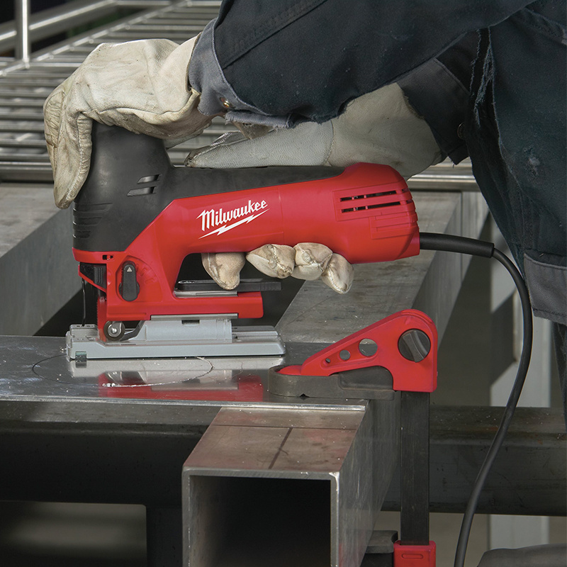 Scie sauteuse MILWAUKEE® JS120X 710 W, avec variateur de vitesse, système FIXTEC™ pour un changement rapide de lame, mouvement pendulaire 4 positions, semelle ajustable et système anti-vibration. Livrée avec accessoires et câble de 4 m.