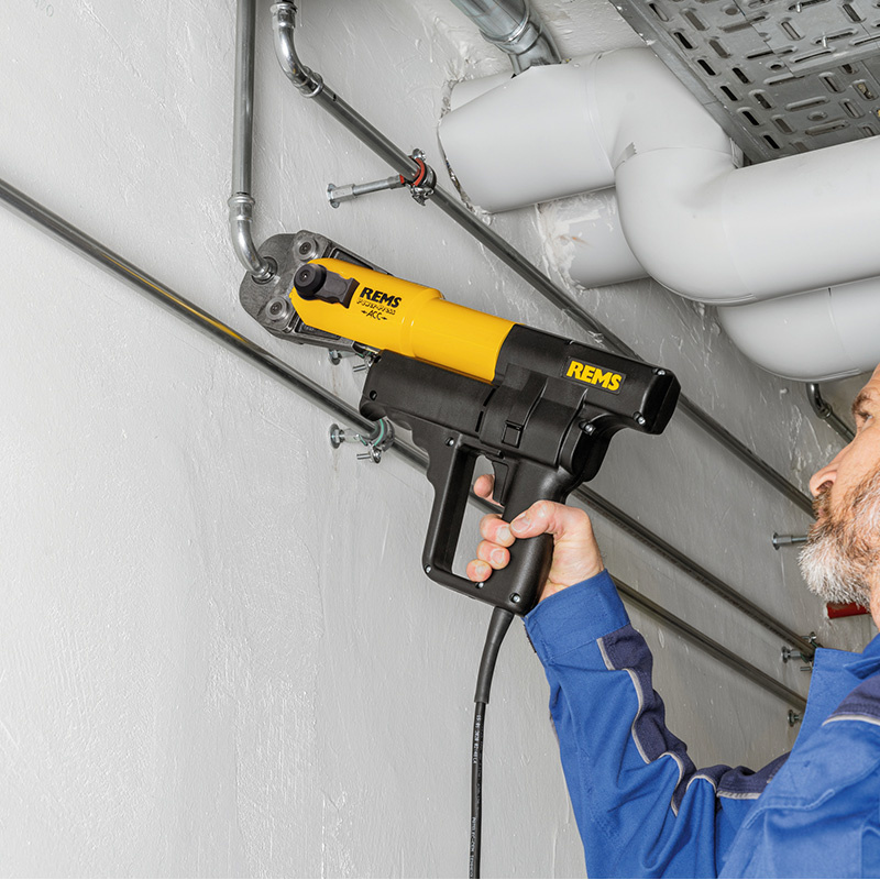 La sertisseuse électrique REMS Power Press ACC 450W est compacte, légère et rapide, offrant un sertissage fiable de Ø10 à Ø108 mm. Son retour automatique du piston et sa tête pivotante à 360° garantissent une utilisation optimale sur chantier. Livrée dans un coffret métallique pour une grande praticité.