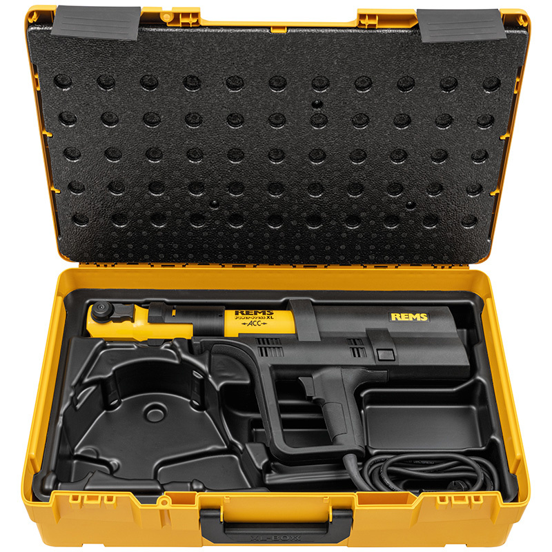 La sertisseuse électrique REMS Power Press XL ACC est une solution puissante et rapide pour le sertissage universel des raccords jusqu'à Ø110 mm. Avec une force de 32 kN et un cycle de sertissage d'environ 15 secondes, elle offre des résultats rapides et fiables. Livrée dans un coffret robuste, sans pince à sertir.
