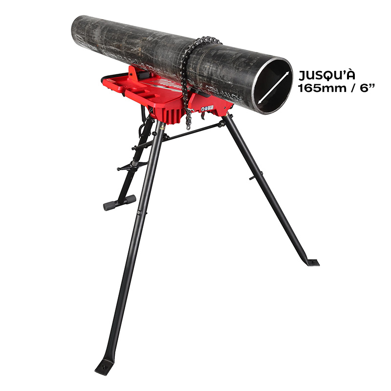 Le support de tubes MILWAUKEE® avec étau à chaîne pliable permet de maintenir divers matériaux jusqu’à 165 mm, offrant une grande polyvalence pour travailler avec des scies et meuleuses. Son design pliable facilite le transport et le rangement. Mâchoires interchangeables pour une utilisation sur différents matériaux.