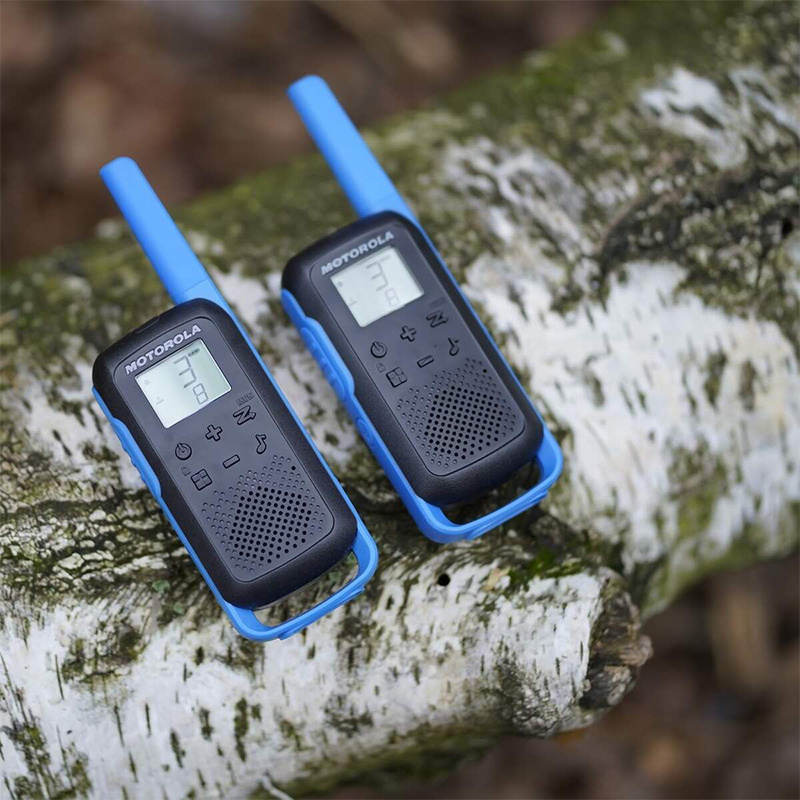 Talkie-Walkie MOTOROLA T62 (x2) – Pack complet 16 canaux sans licence, portée jusqu’à 8 km Recharge USB, batteries NiMH, mains libres Livrés avec chargeur, clips ceinture, manuel
